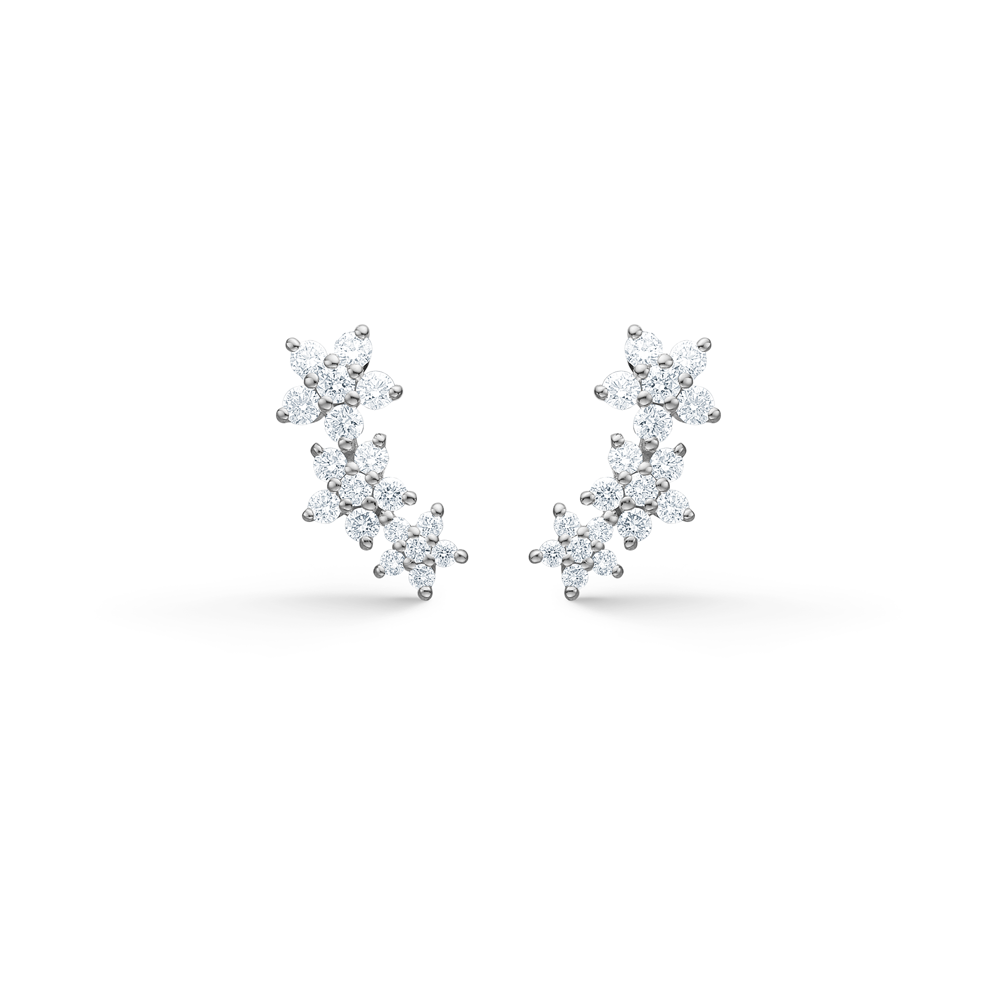 The Céleste earrings are inspired by the calm movements and balanced shapes of the sky. The stones are arranged in a flower-inspired cluster along the contour of the ear, where each facet-cut surface captures and guides the light. The combination of polished silver and precisely placed zirconia creates a calm, elegant expression with a focus on balance and refined luxury close to the skin.