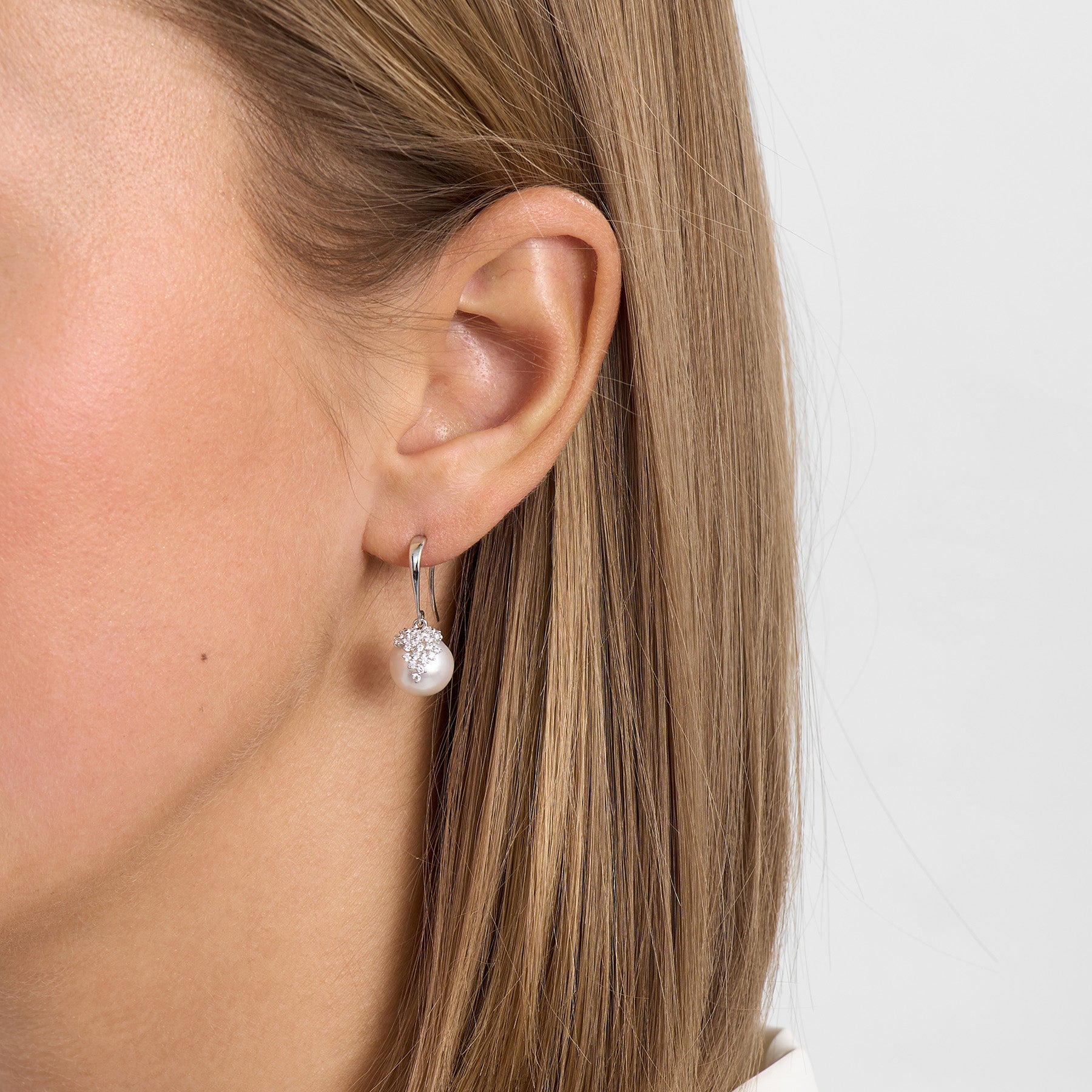 Chloé earrings in sterling silver with zirconia and cultured pearl
