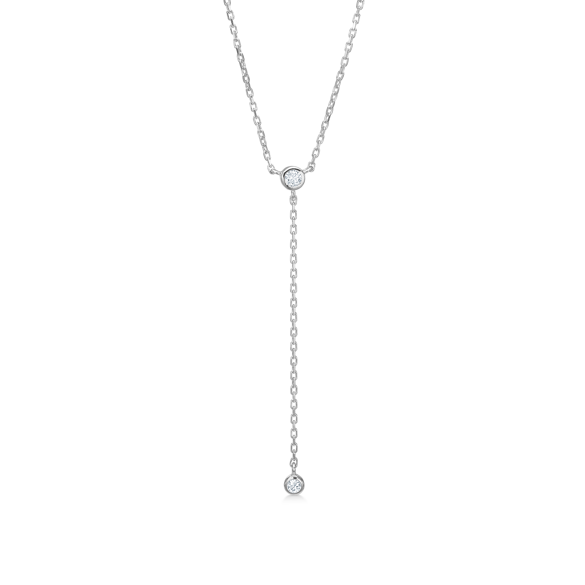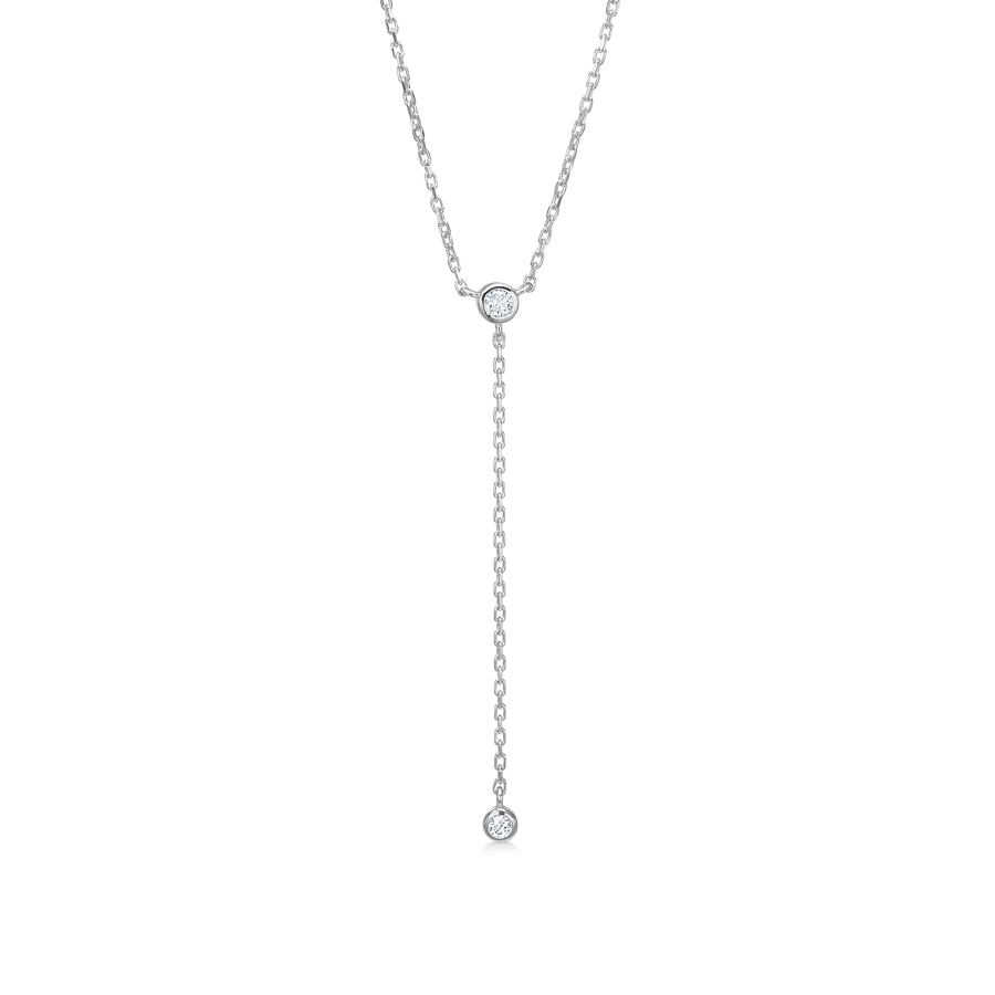 Beautiful and stylish necklace in polished sterling silver, designed with an elegant Y-fall and fine white topazes. A feminine piece of jewelry that adds a light and sophisticated look. The chain measures 40 cm and can be adjusted by 5 cm for a flexible fit.