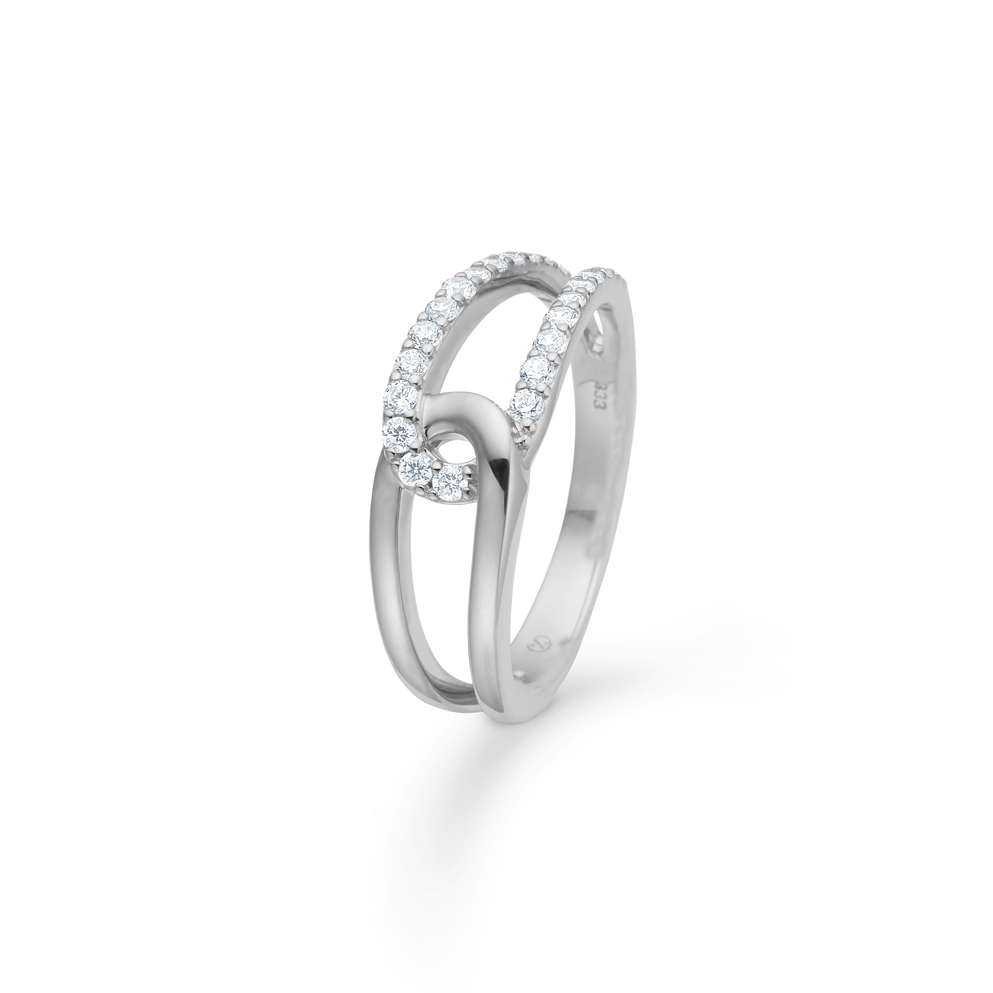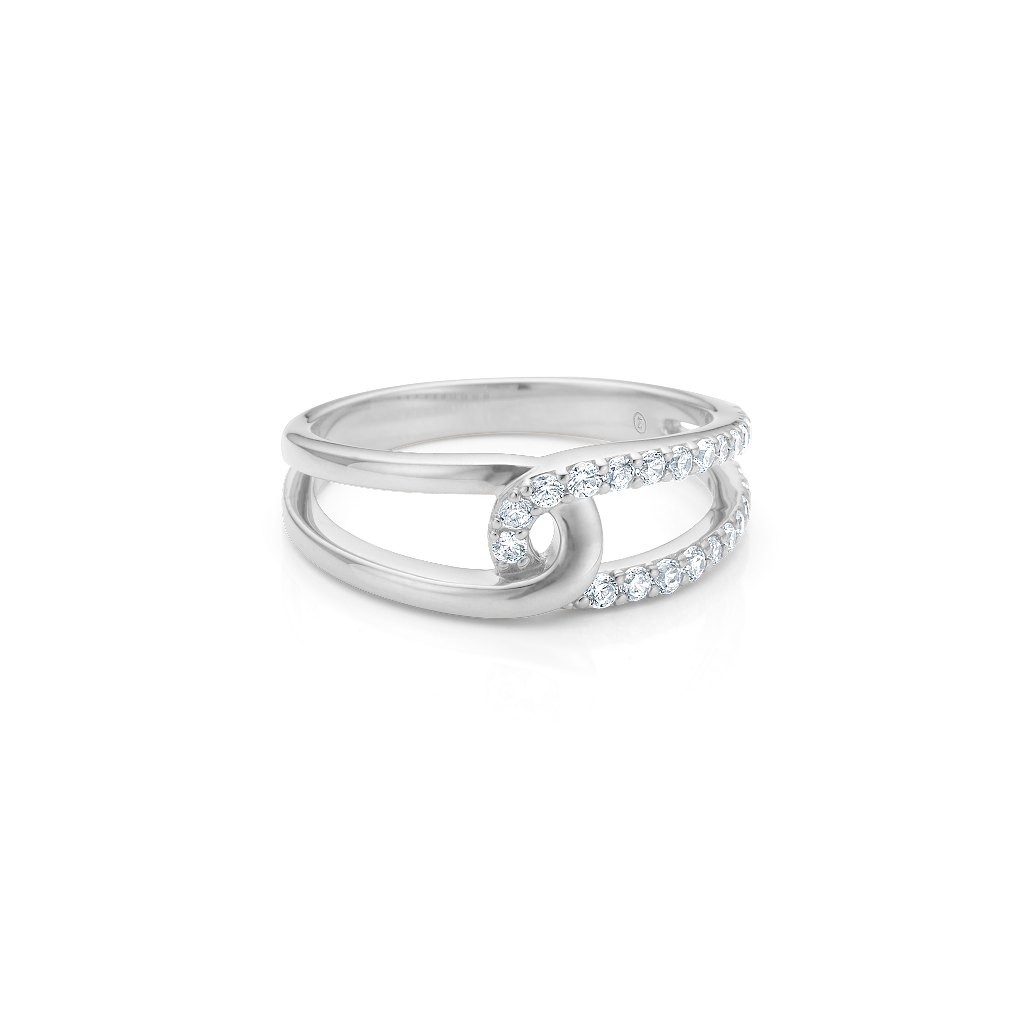 Elegant and modern ring in polished sterling silver with sparkling zirconia. The Swoosh ring is designed as an open double ring, where lightness and graphic form merge into a stylish expression.