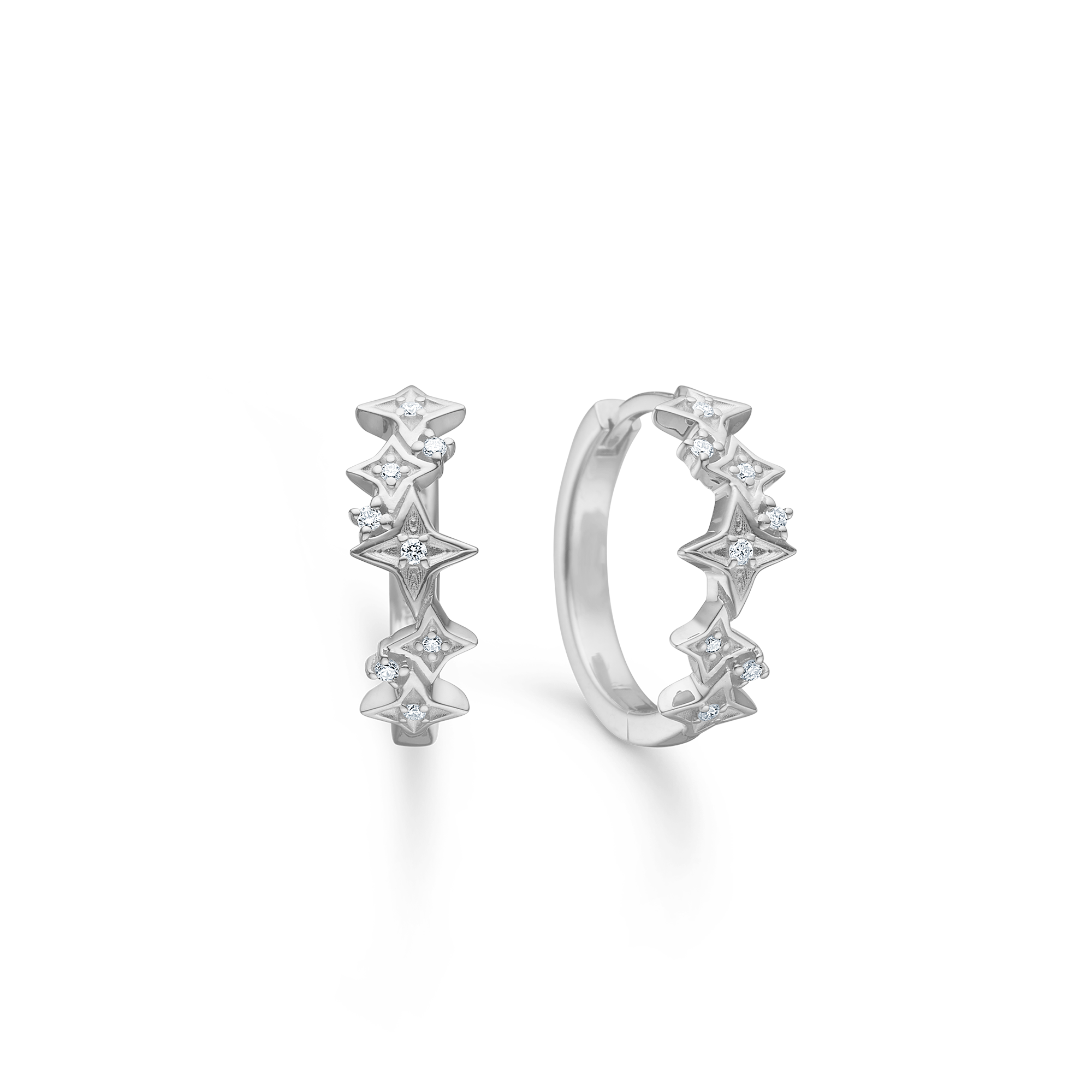 The Vesper earrings were created by Mads Ziegler with inspiration from the transition between day and night, when the first stars appear. The five-pointed star shapes are transformed into a precise, curved creole band, where the small zirconia stones form a discreet line of light. The combination of polished silver and sharp contours creates a calm, focused expression with a subtle star theme that brings presence and elegance close to the skin.