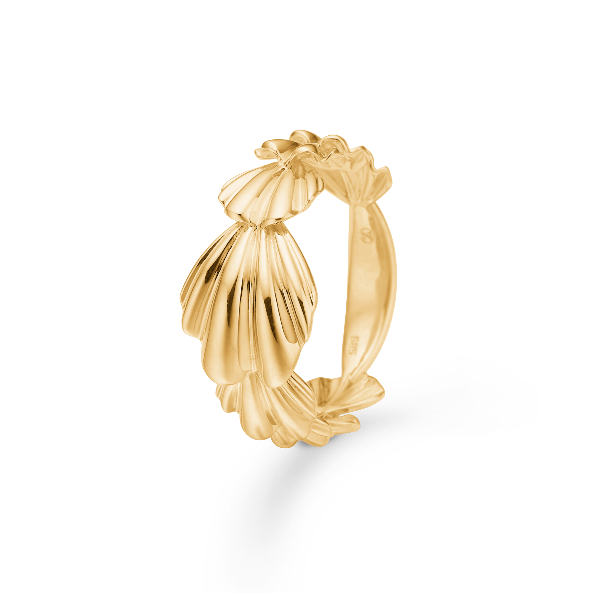 The Mads Z Velvet ring combines modern Danish design with the soft lines of nature. The triple, movable fan shape with undulating grooves, inspired by velvet folds, creates a harmonious balance between sculptural architecture and organic elegance. Highly polished 14 carat gold reflects the light beautifully, and the soft, rounded inside ensures comfort all day. Velvet is a luxurious statement piece that can be worn alone or combined with other gold rings for a personalized look.