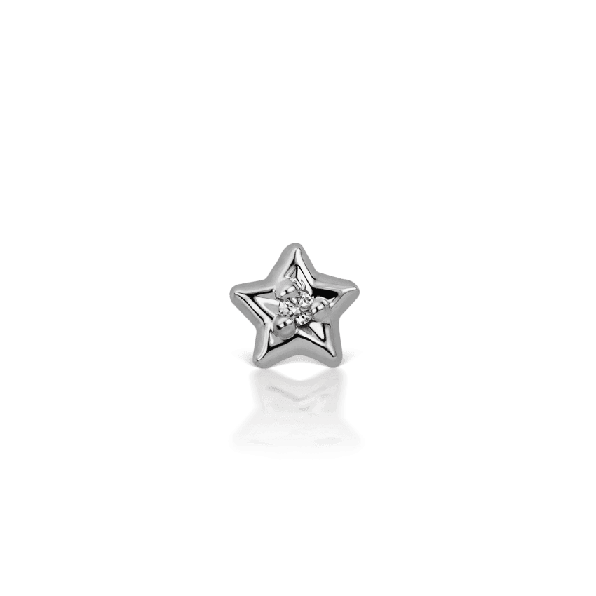 The small star in white gold from MARIA TASH has a small diamond inserted in the middle. The back is a flower that, with its thread, can be easily screwed on and off.