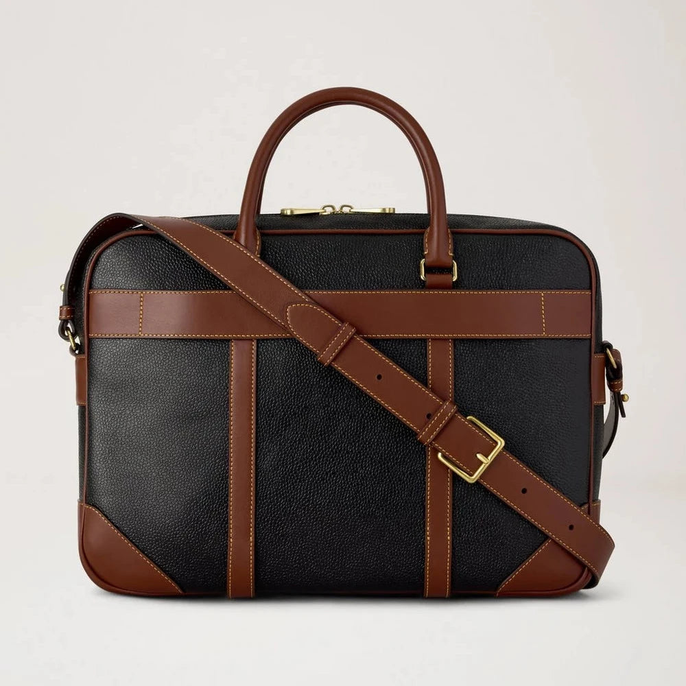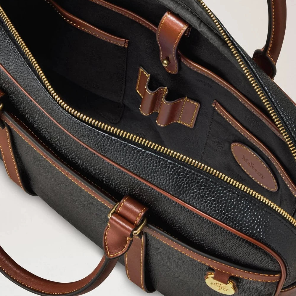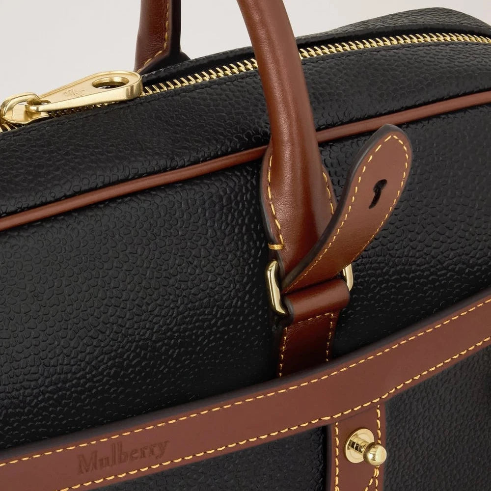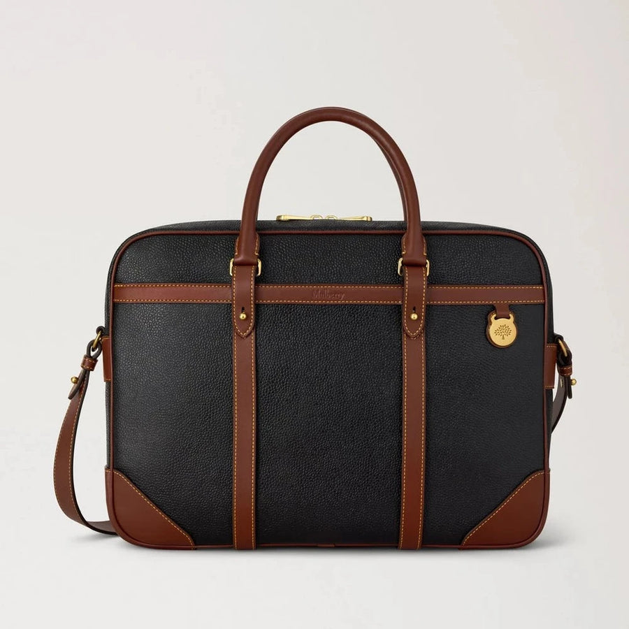 Mulberry Heritage Briefcase – Black & Cognac Bio-Based Scotchgrain:
