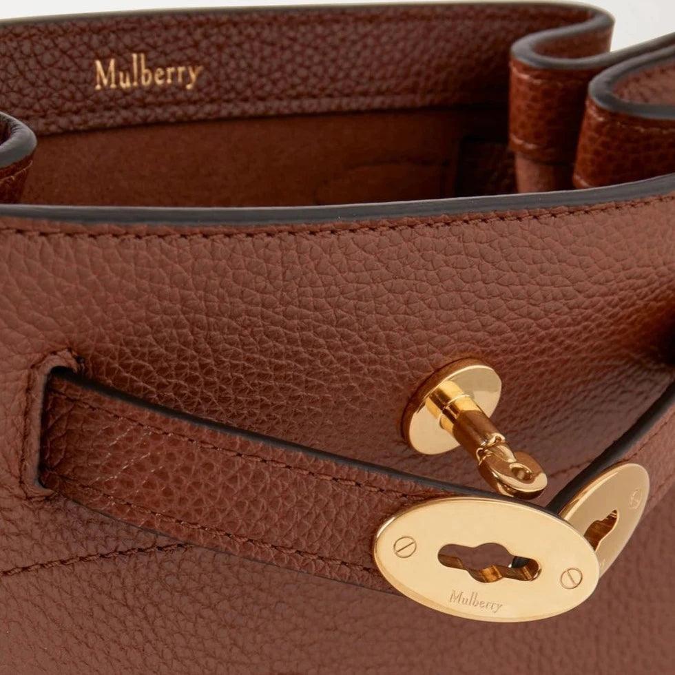 - Features: Postman's Lock on belt closure, adjustable and removable crossbody strap, top handle, interior pocket, embossed Mulberry-logo in foil