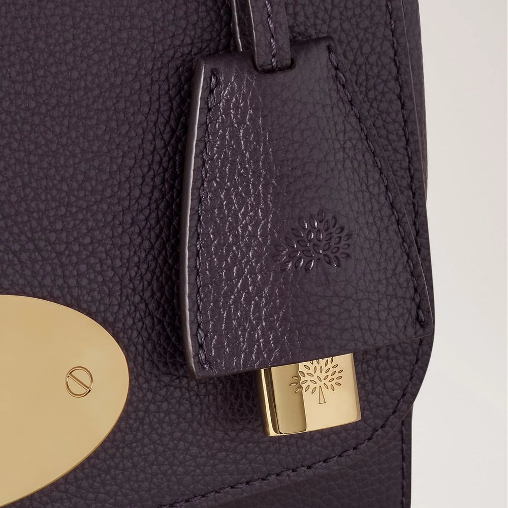 Tasken er udført i Deep Aubergine Small Classic Grain-læder, der har en blød overflade og en diskret struktur. De gyldne detaljer, Mulberrys ikoniske Postman’s Lock og den hængende læderfob med skjult hængelås giver tasken et eksklusivt og genkendeligt udtryk.