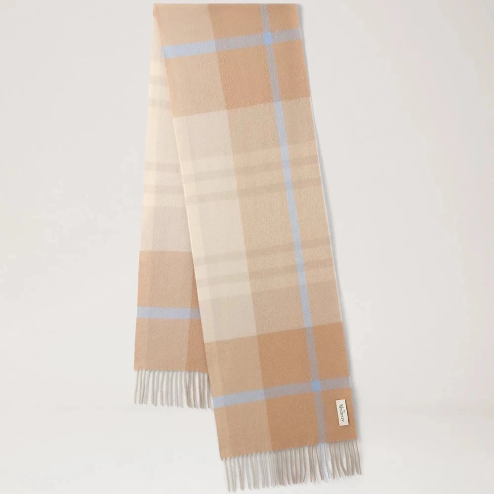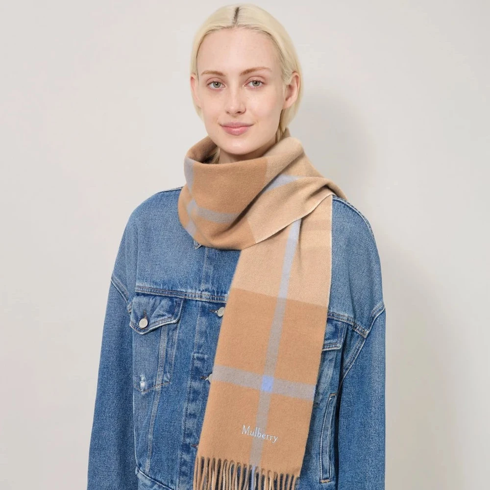 Mulberry Small Check Merino Wool Scarf – Camel & Poplin Blue / Classic Checked Wool Scarf: