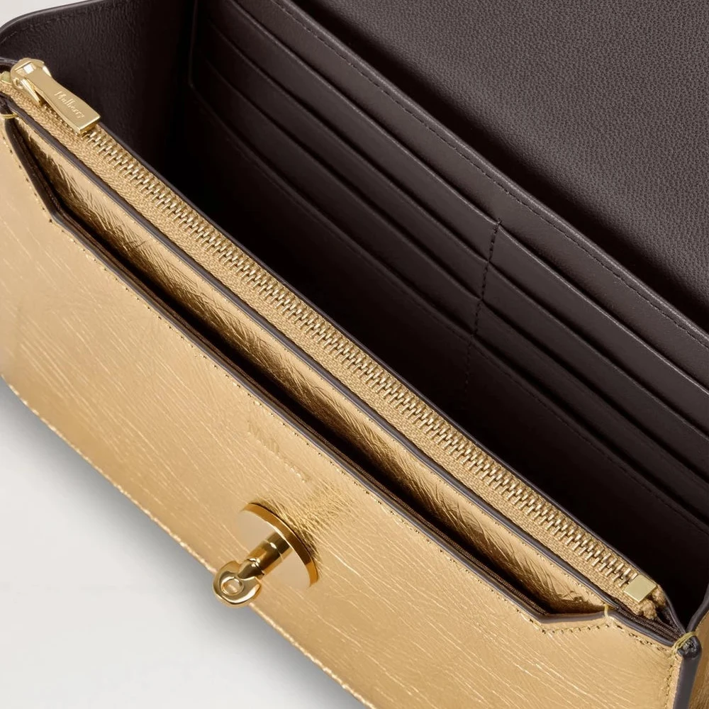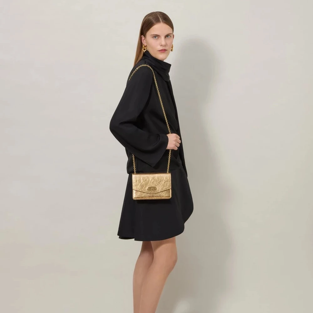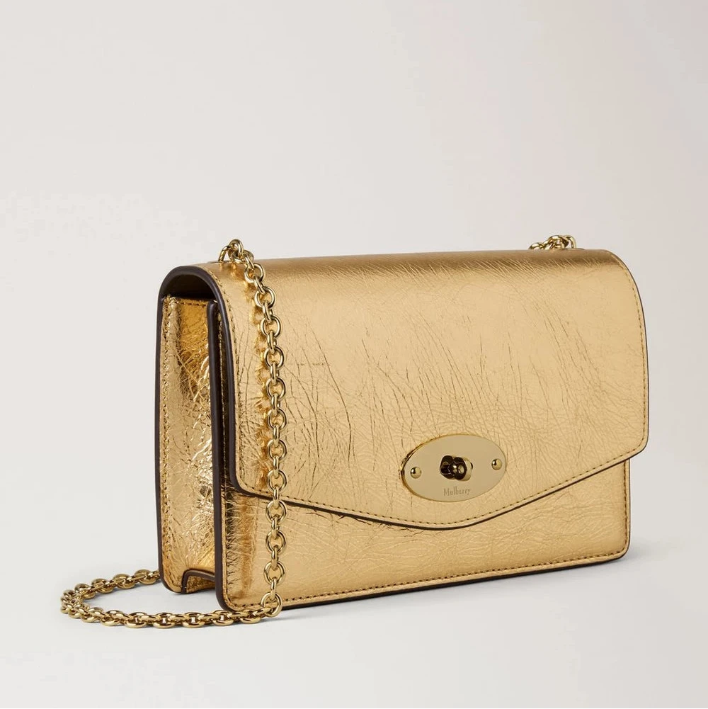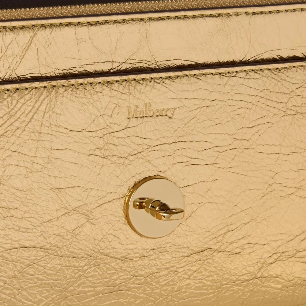 Mulberry Small Darley – Crinkled Metallic Somerset Gold: