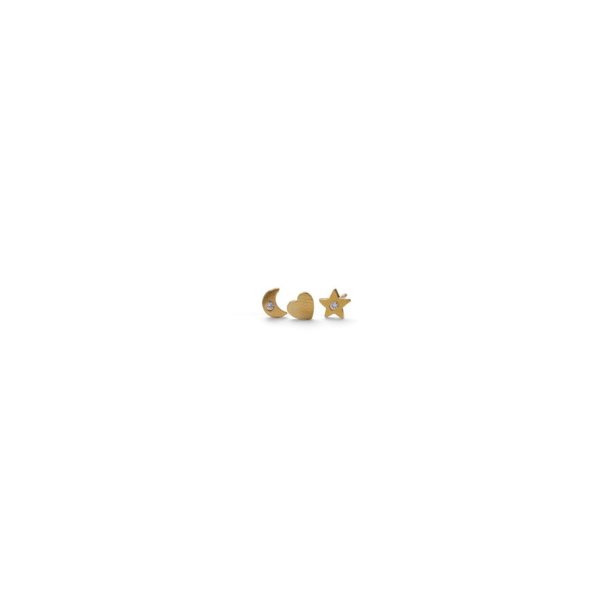 Night Light Earsticks er et charmerende sæt med tre ørestikker, inspireret af nattens magiske lys. Sættet rummer en stjerne, en måne og et hjerte – tre tidløse symboler, der tilsammen giver en følelse af ro, poesi og drømmen om en klar stjernehimmel.