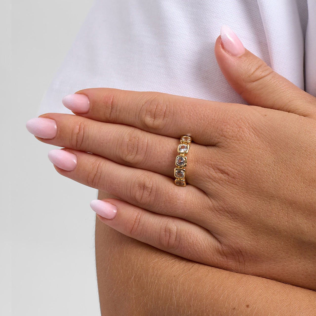The Elera Large ring from Studio Z is an elegant statement piece with a calm and modern expression. Inspired by the warm afterglow of the sun, the ring combines a smooth, polished surface with five clear zirconias that add a beautiful and discreet shimmer.