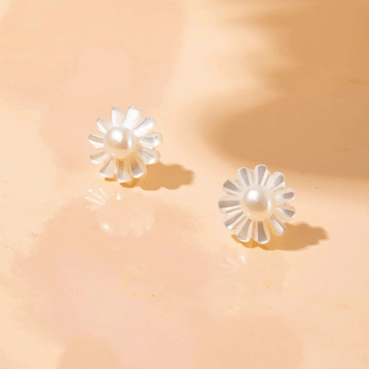 Vincent Venus Daydream Dot Pearl Earrings Gold Plated – Flower Studs in Mother of Pearl and Freshwater Pearls: